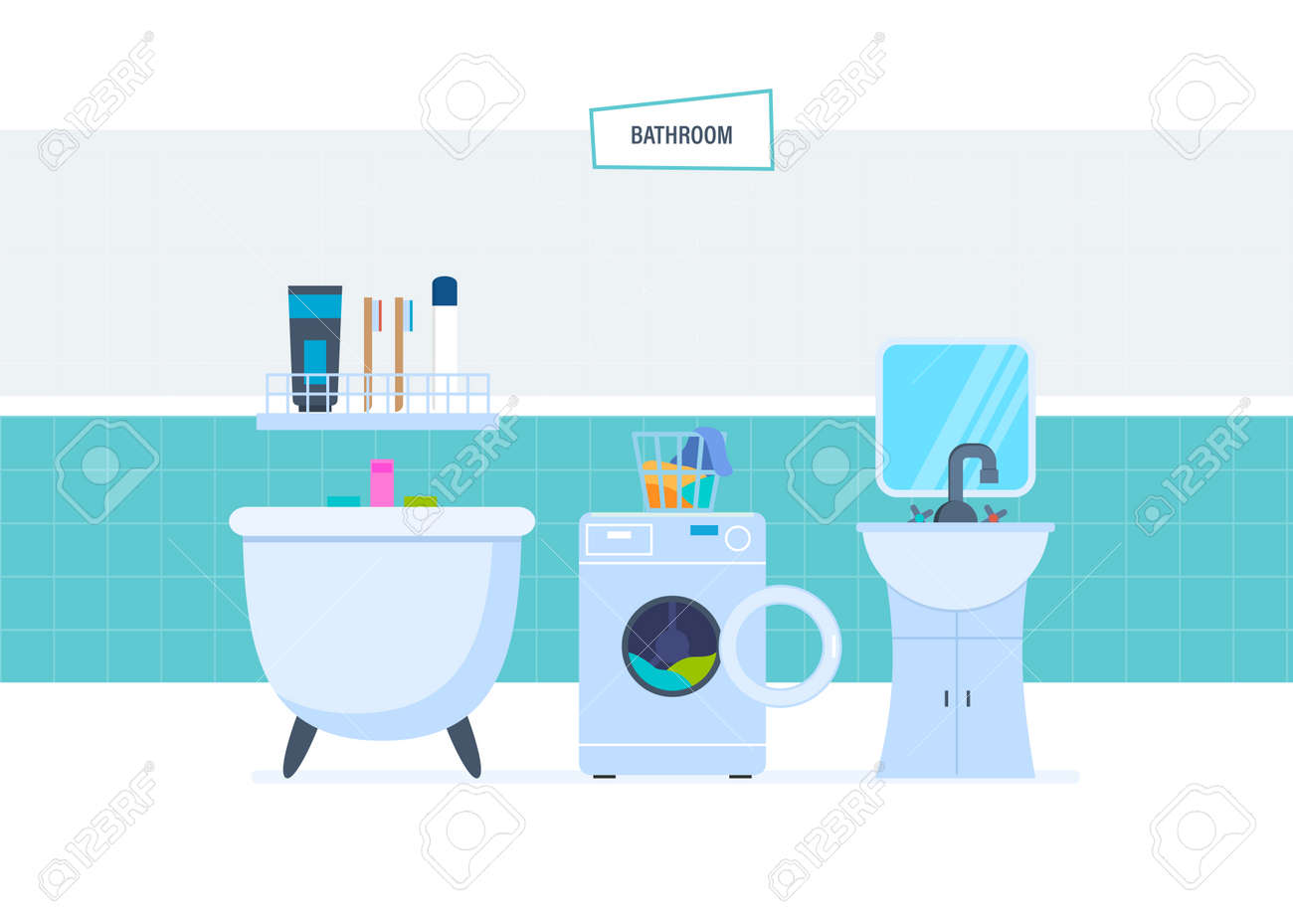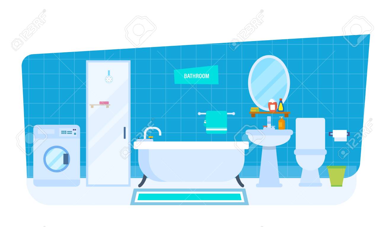 Interior Del Cuarto De Baño, Con Los Aparatos Electrodomésticos Interior De Baño, Con Electrodomésticos, Muebles, Artículos Para Interior Del Cuarto De Baño, Con Los Aparatos Electrodomésticos